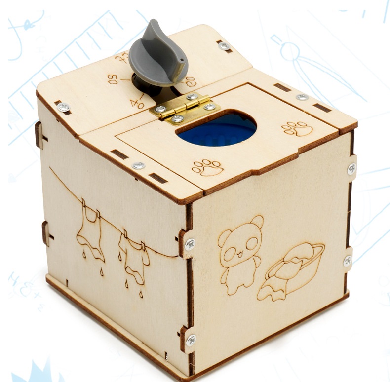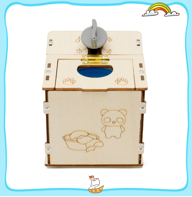 Máy giặt cửa trên là một mô hình đồ chơi DIY làm bằng tay với các hướng dẫn chi tiết cho trẻ lắp ráp bằng tay, rèn luyện khả năng thực hành và khả năng quan sát của trẻ, và rèn luyện tính kiên nhẫn của trẻ.