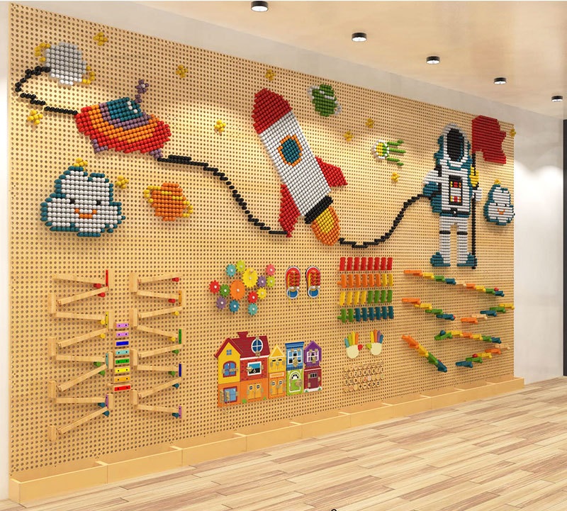 Bắt đầu với việc tạo hoa văn bằng gạch, đá quý, mảnh khảm và chốt được lắp vào vị trí một cách đơn giản để tạo hoa văn và hình ảnh trên STEM Wall. Có ốc vít và công cụ để cố định các bộ phận vào đúng vị trí và hàng trăm Bảng học tập chuyên dụng tập trung vào một chủ đề duy nhất như thao tác, phân loại, giải quyết vấn đề, từ tính, nhiệt, ánh sáng, v.v.