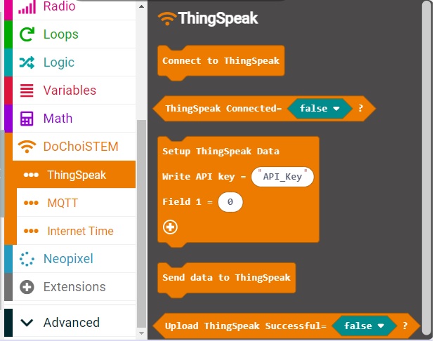 Thư viện DoChoiSTEM-IoT giúp Microbit gửi dữ liệu lên ThingSpeak
